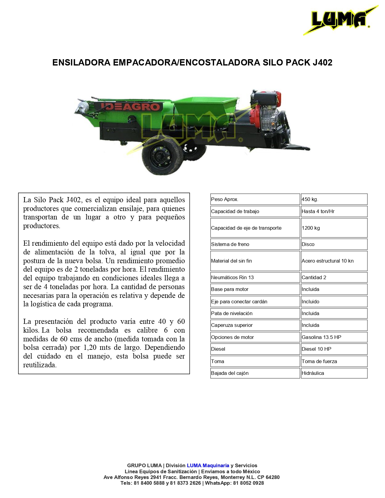 ENSILADORA EMPACADORA/ENCOSTALADORA SILO PACK J402