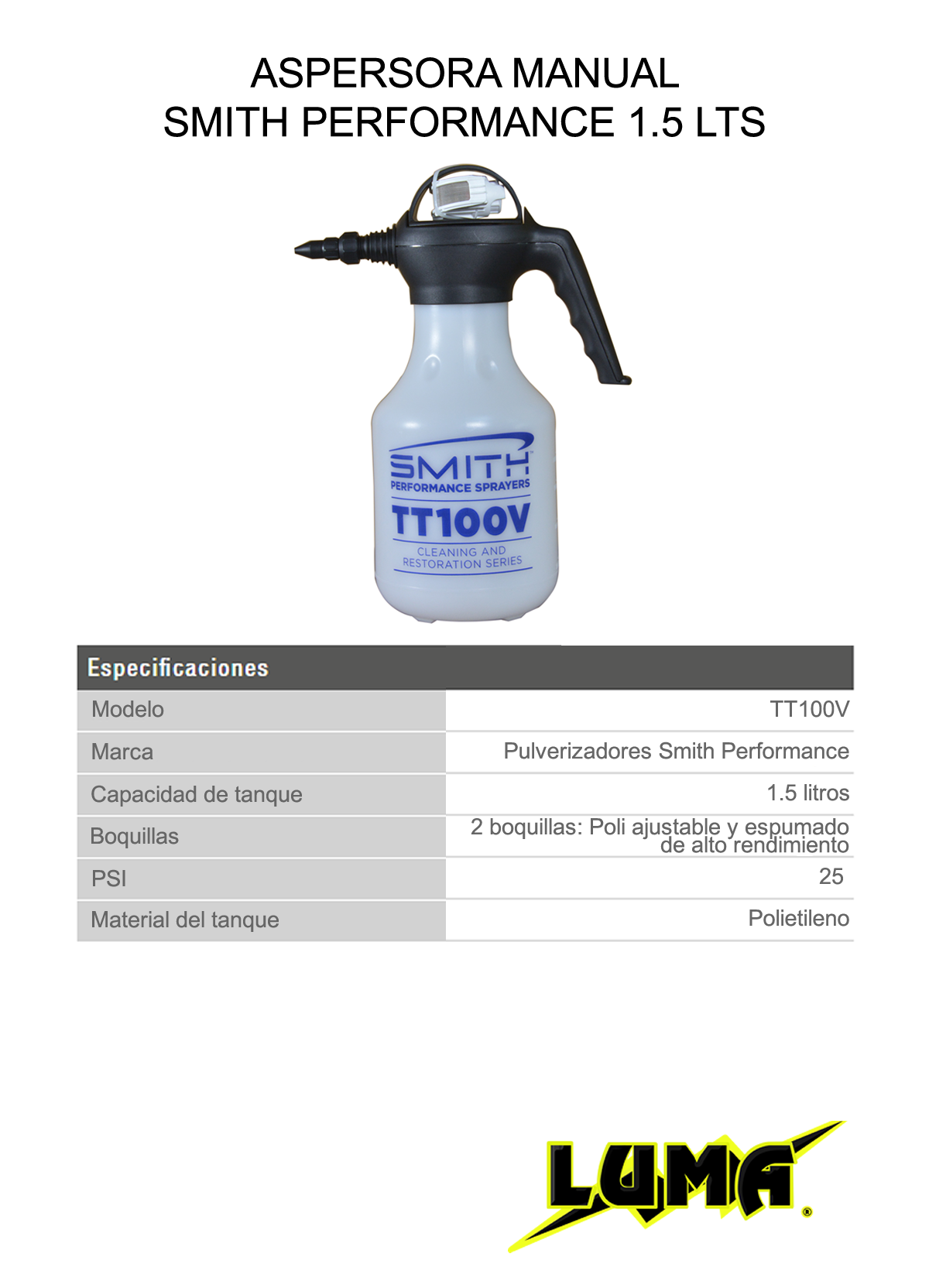 ASPERSORA MANUAL PARA FUMIGAR Y/O SANITIZAR SMITH PERFORMANCE TT100V 1.5 L